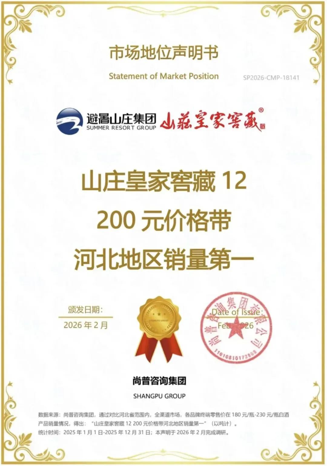 近日,经尚普咨询调查认证,山庄集团旗下核心单品皇家窖藏(12)被认定为“200元价格带河北地区销量第一”。众所周知,优秀白酒品牌的营销任务是通过产品把价格卖出去,而不是通过价格把产品卖出去。200元价格带销量河北第一,这是山庄集团在营销层面...