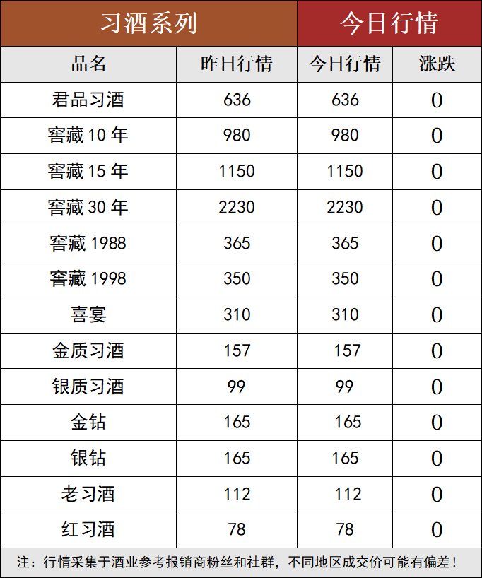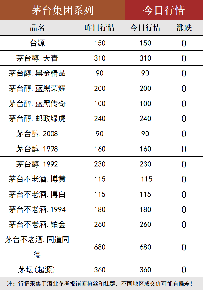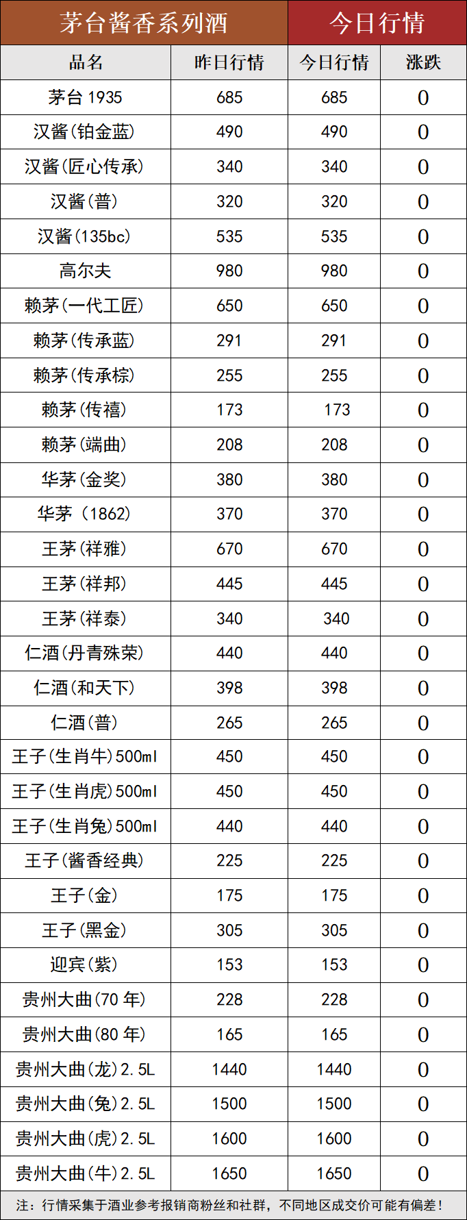 | 43度喜宴茅台红 | 670 | 805 | 0 |
