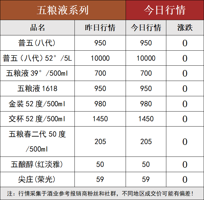 | 五粮液普五 | 790 | 790 | 0 |