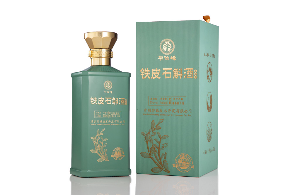 华仙峰的第一产品“铁皮石斛酒”,是来自贵州茅台镇的53度酱香型白酒;第二产品“铁皮石斛养生面”,是来自重庆云阳的铁皮石斛养生面。“铁皮石斛酒”有瓶装酒、封坛酒和定制酒三个产品系列。