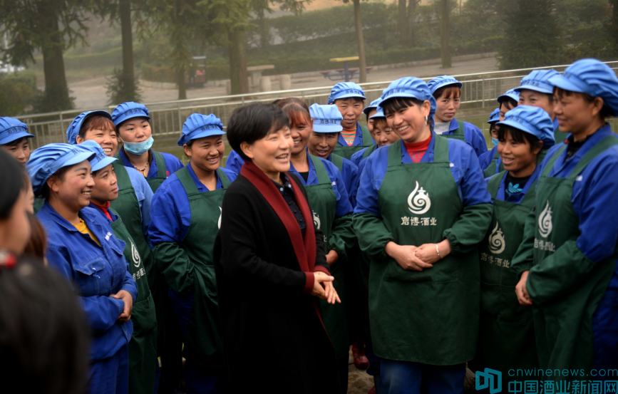 没有专业人才?余留芬亲自去请。她先后多次找到在北京开会期间认识的酿酒大师季克良、黄永光。“我出身农民家庭,我不想老百姓的钱打水漂,我愿意当岩博酒业的顾问。”2013年,季克良在前来岩博村调研时,被余留芬的创业精神所感动,决定担任岩博酒业的技术顾问。