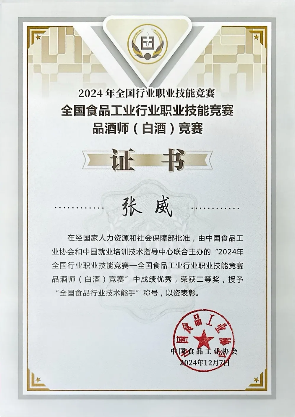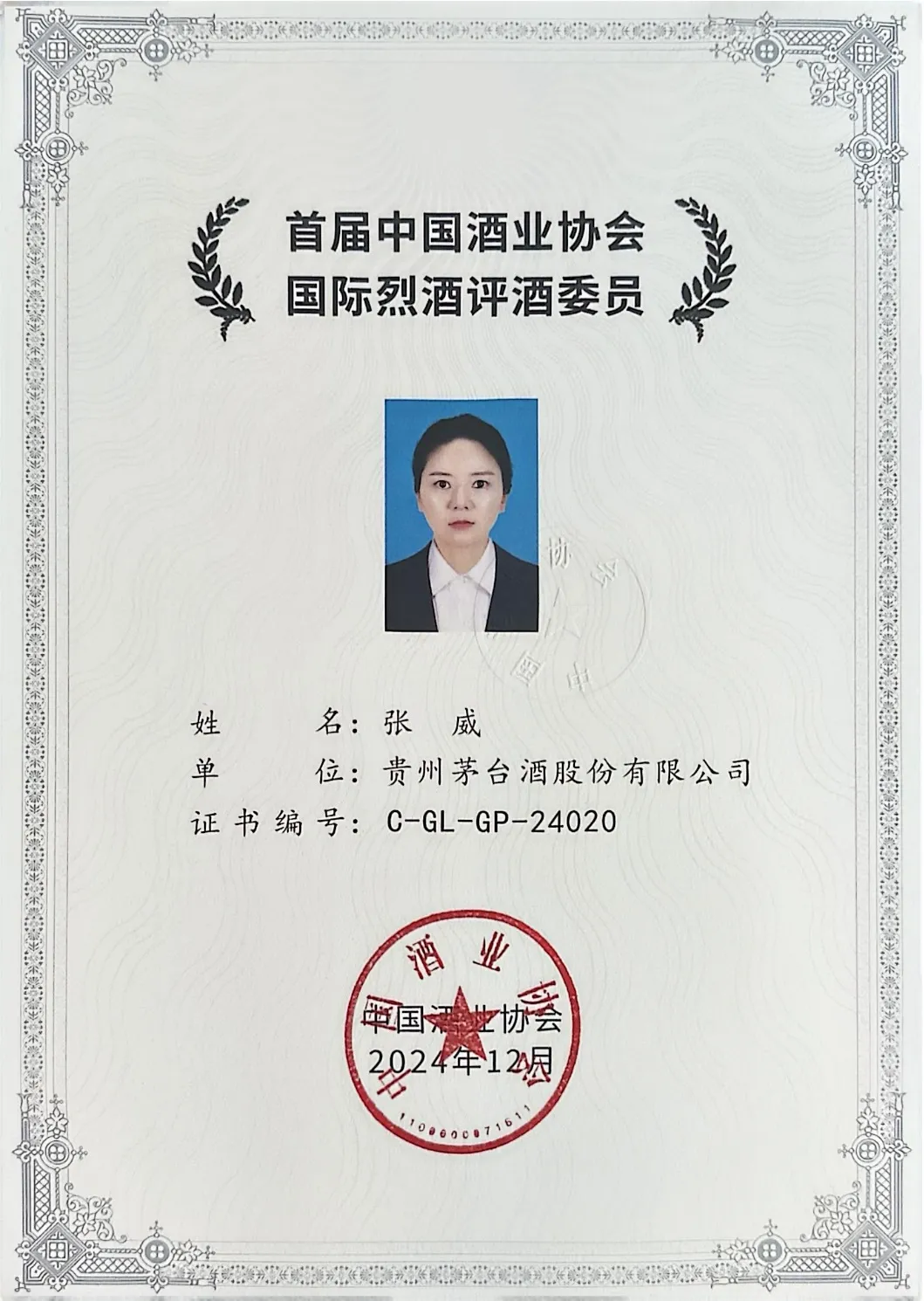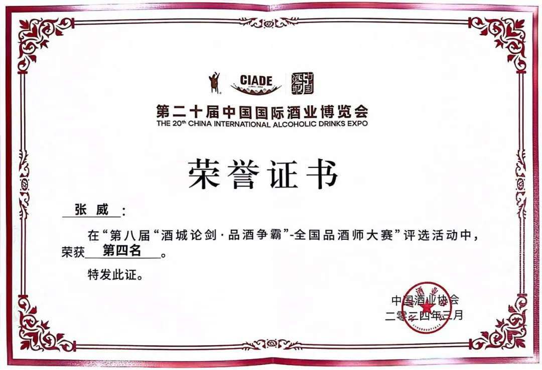 就在刚刚过去的第五届全国白酒职业技能竞赛决赛,张威师徒携手出战,与其他品酒师一同代表茅台参赛,均取得了优异成绩。此外,她还荣获2024年全国食品工业行业职业技能竞赛二等奖、第八届“酒城论剑·品酒争霸”全国品酒师大赛第四名,全国食品行业技术能手”“贵州省国资委专业技术型青年”“贵省技术能手”等称号及国家级白酒评委、国际烈酒评酒委员、公司特级品酒师等专业头衔——每一项荣誉背后,都是她日复一日的练习、精益求精的坚守,更是她对茅台初心的最好证明。
