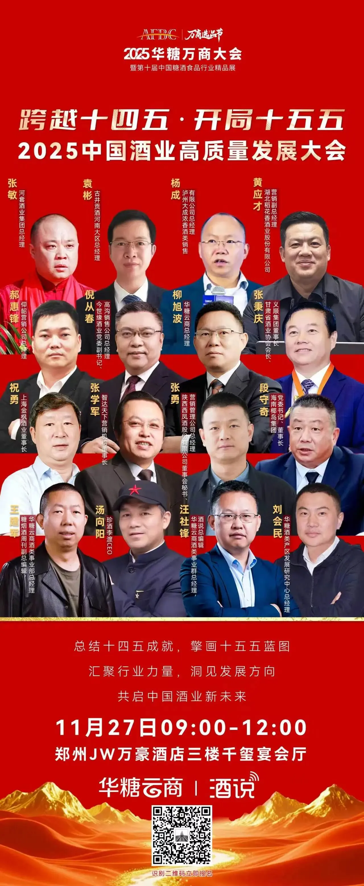 在十四五临近收官、十五五全新启幕的关键节点,11月27日上午,“跨越十四五·开局十五五——2025中国酒业高质量发展大会”将在郑州JW万豪酒店盛大开启。这场承载行业总结与前瞻使命的盛会,不仅将系统梳理五年发展成果、预判未来五年走向,更将揭晓...